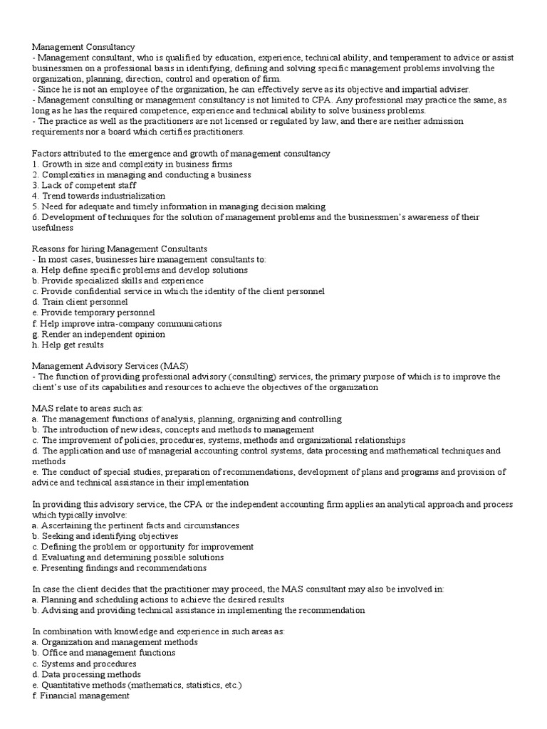 - Management consulting or management consultancy is not limited to CPA. Any professional may practice the same, as