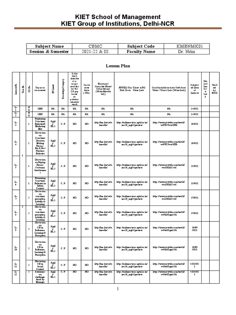 L- 2 Awareness Appl C, P NO NO http://lms.kiet.edu https://onlinecourses.nptel.ac.in/ https://www.youtube.com/watch? 4/10/202