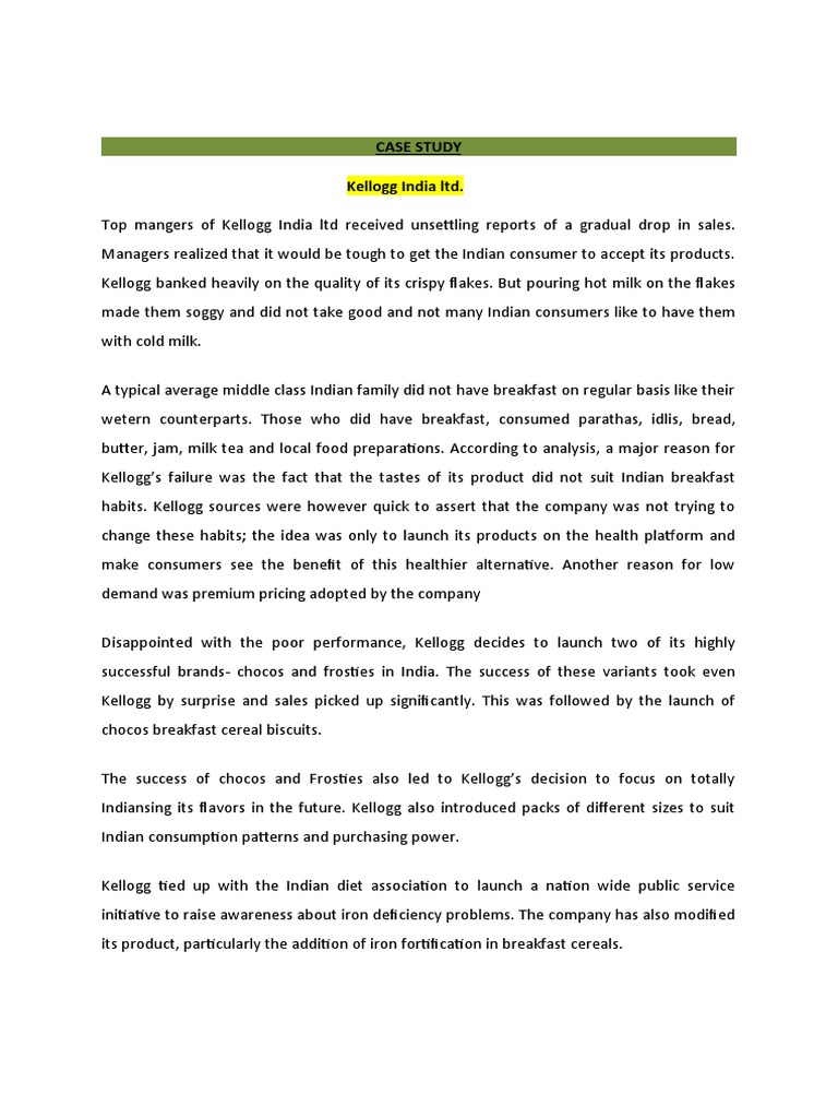 Top mangers of Kellogg India ltd received unsettling reports of a gradual drop in sales.