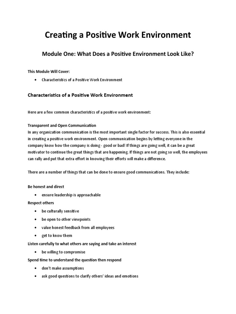 responsibility you have to create and maintain a positive work environment. The course is designed to