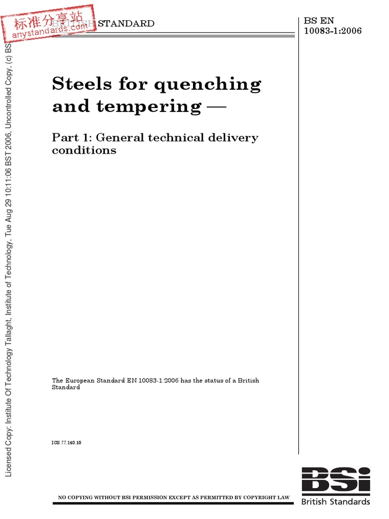 Steels For Quenching and Tempering - : Part 1: General Technical Delivery Conditions