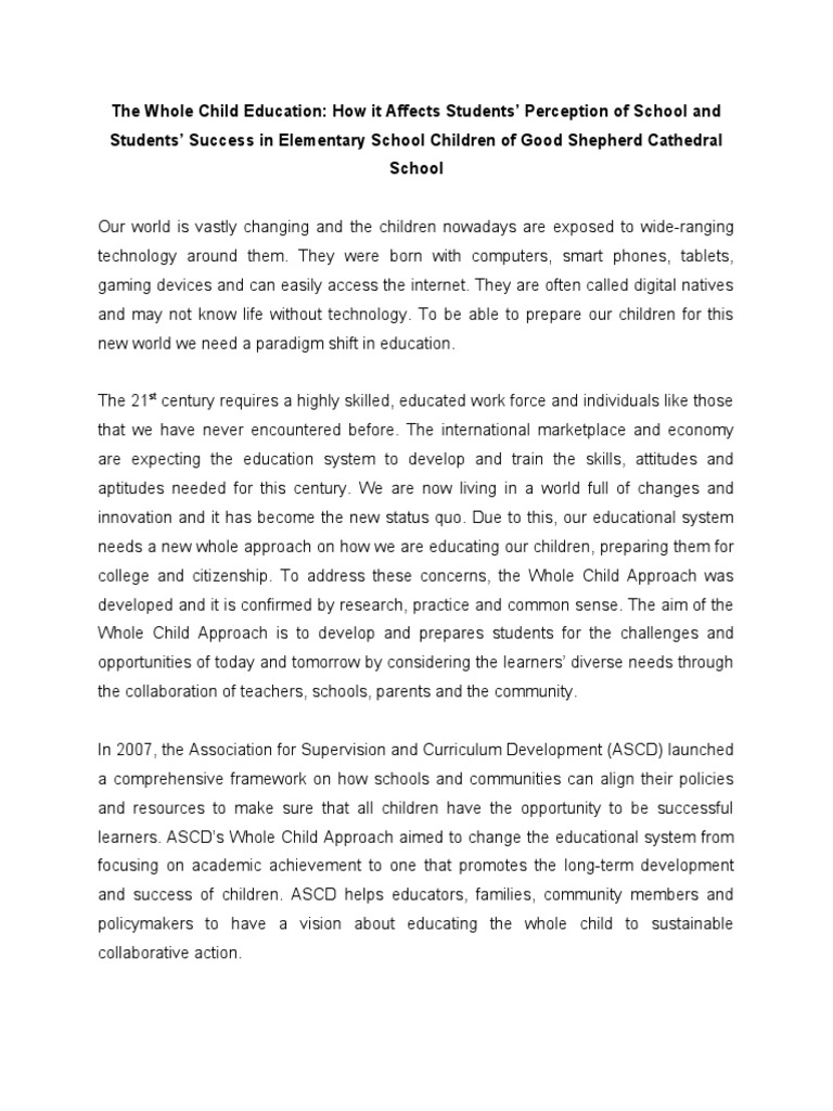 Whole Child Approach to Education. This research attempts to evaluate if the school