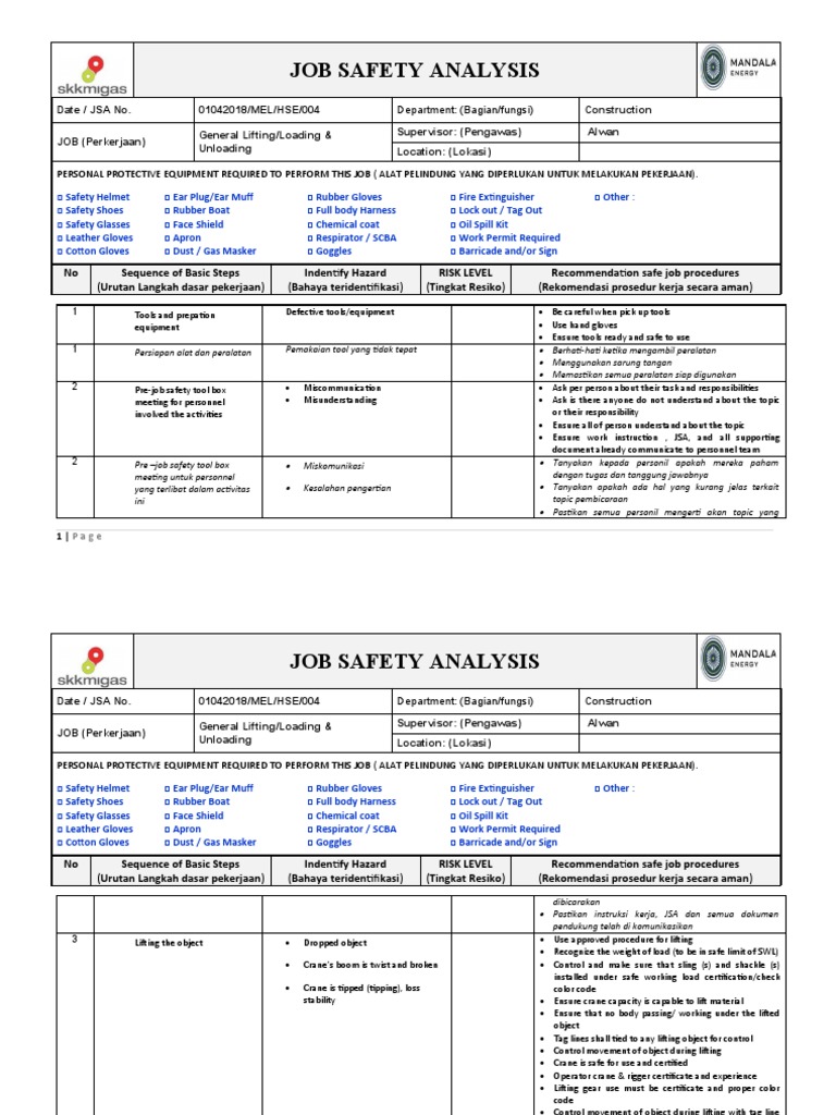 Pastikan instruksi kerja, JSA dan semua dokumen