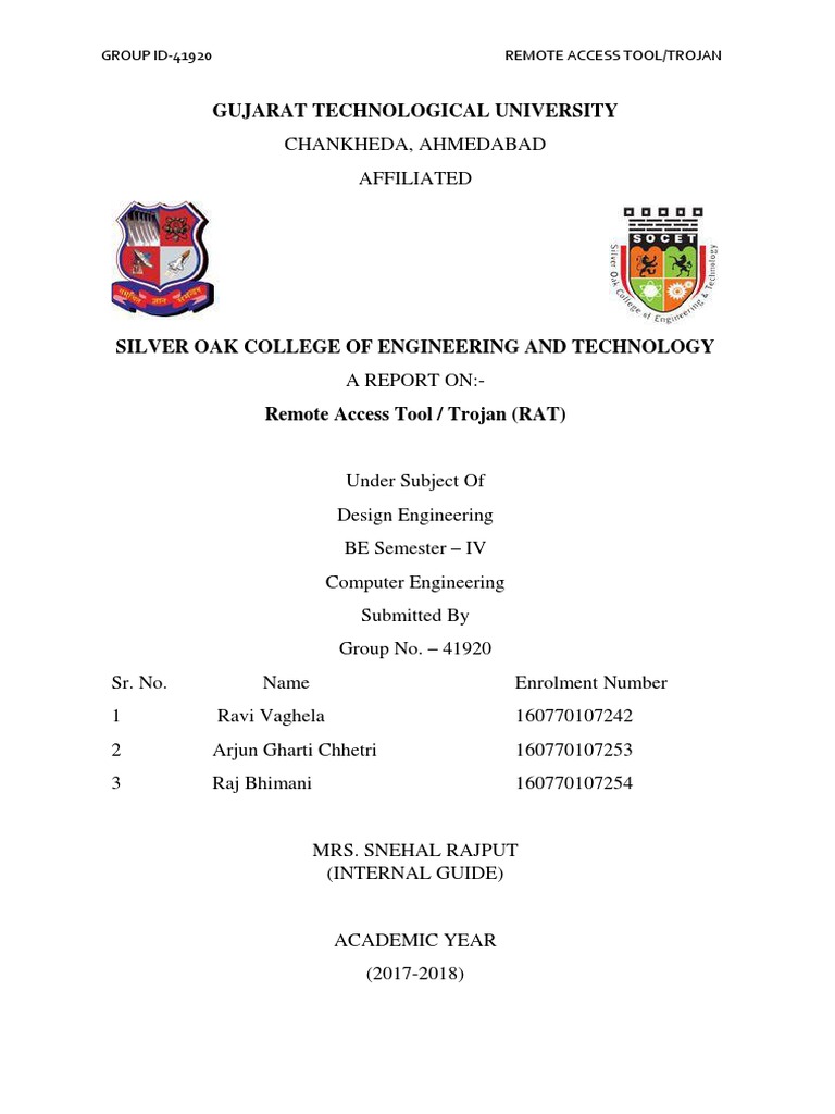 We have finished our project report entitled “Remote Access Tool / Trojan”