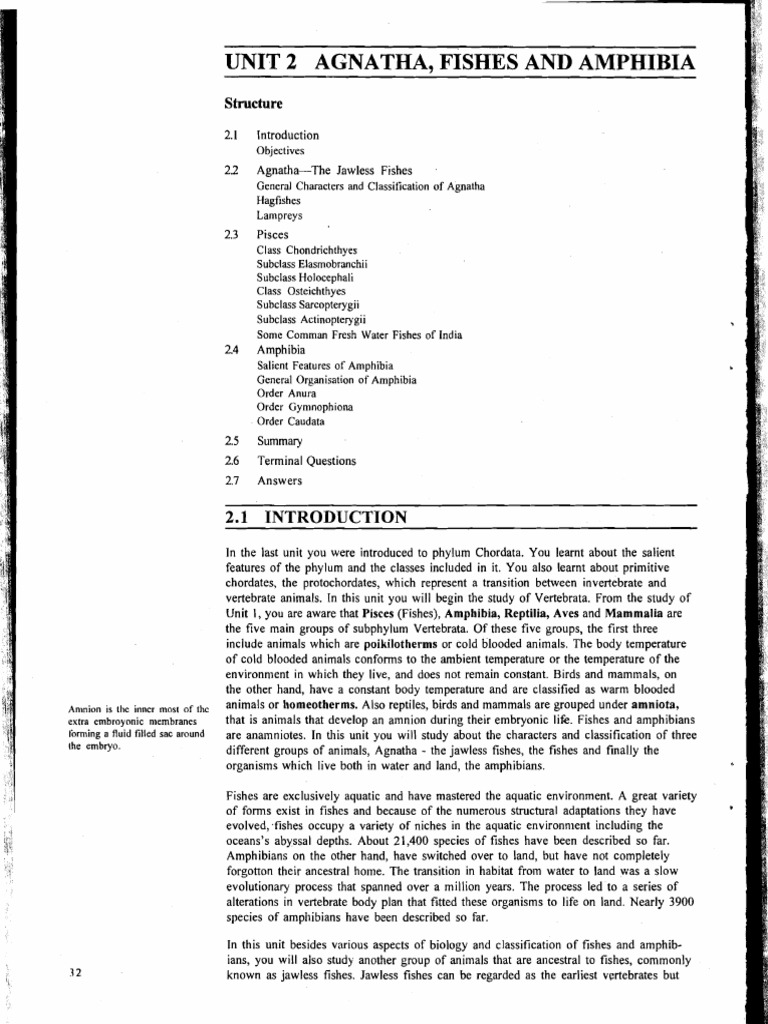 forming a fluid filled sac around are anamniotes. In this unit you will study about the characters and classification of three