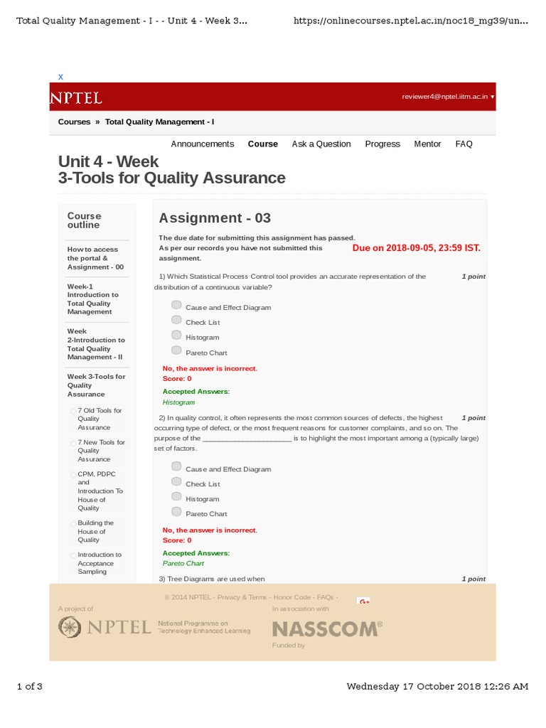 Total Quality Management - I - - Unit 4 - Week 3... [Link]