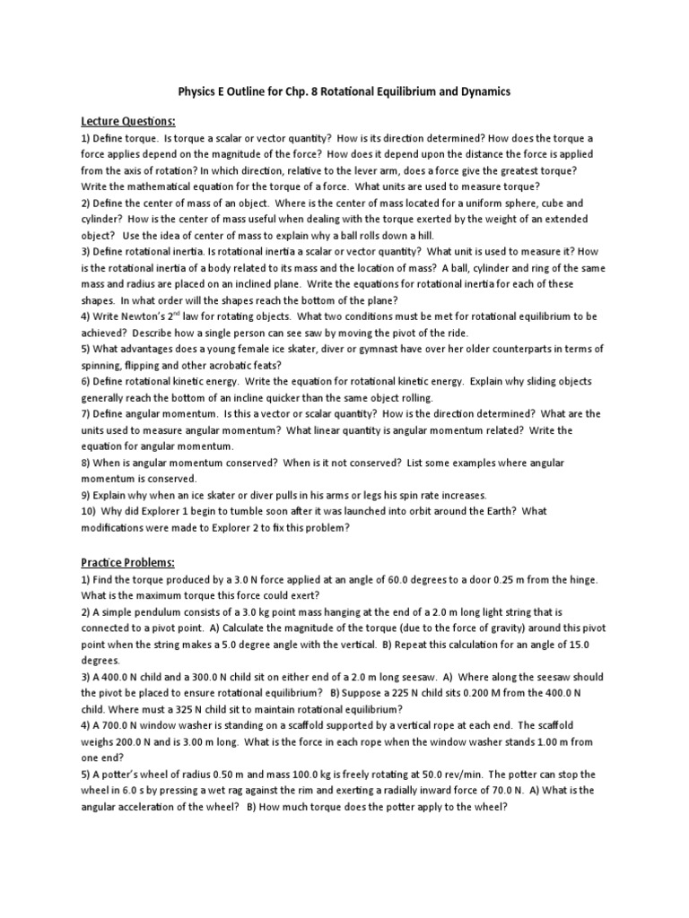 4) Write Newton’s 2nd law for rotating objects. What two conditions must be met for rotational equilibrium to be