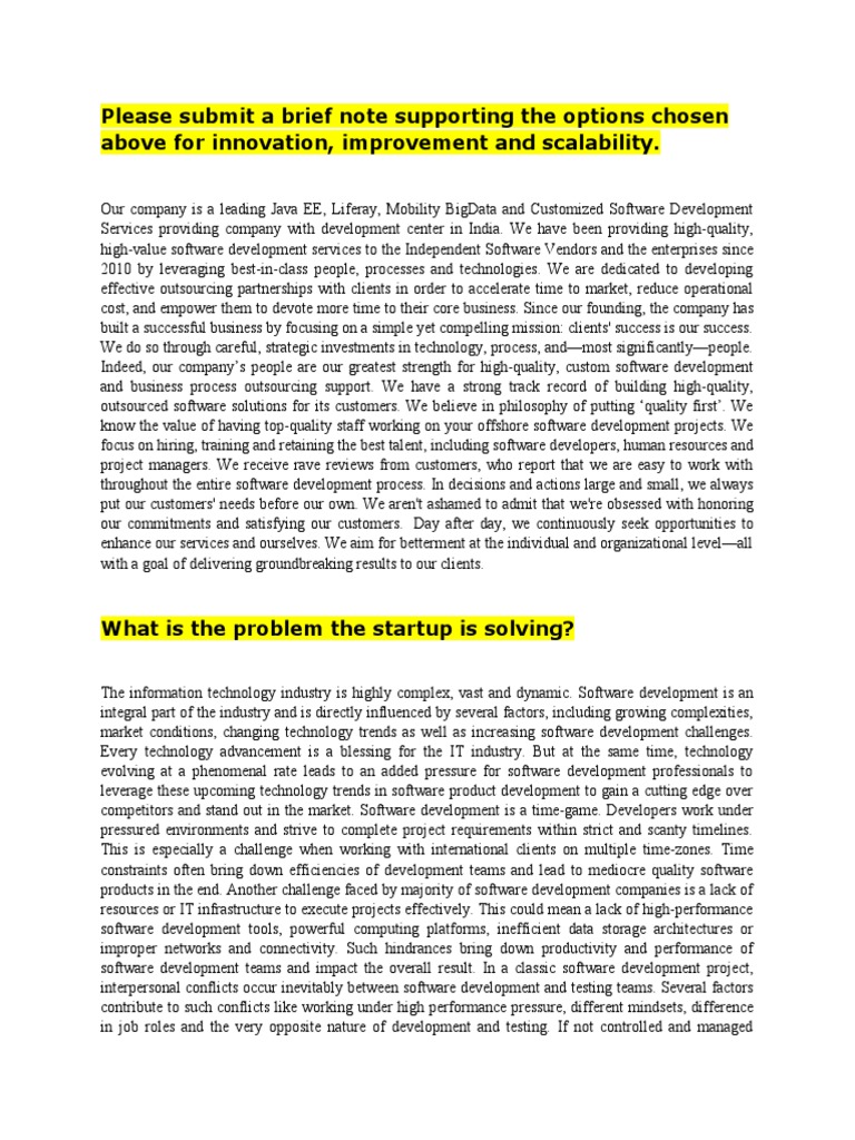 above for innovation, improvement and scalability.