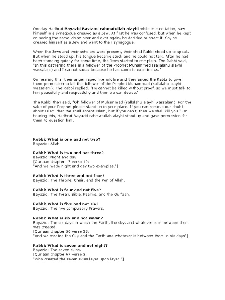 The Rabbi then said, "Oh follower of Muhammad (sallalahu alayhi wassalam). For the