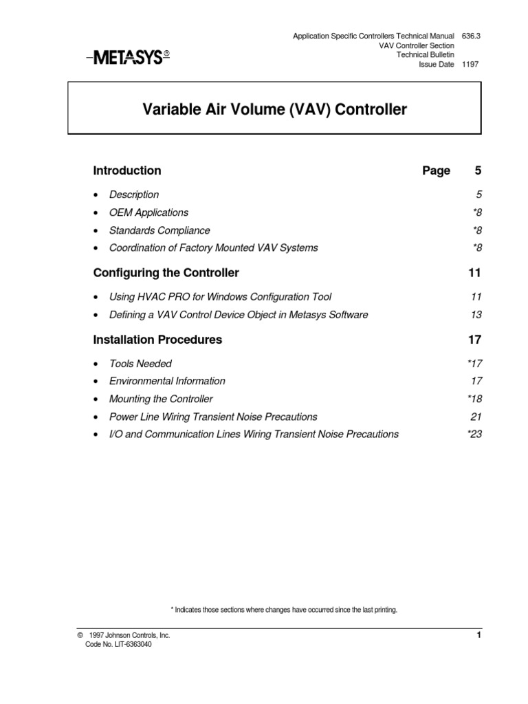 Description The Variable Air Volume (VAV) Controller is an electronic device for