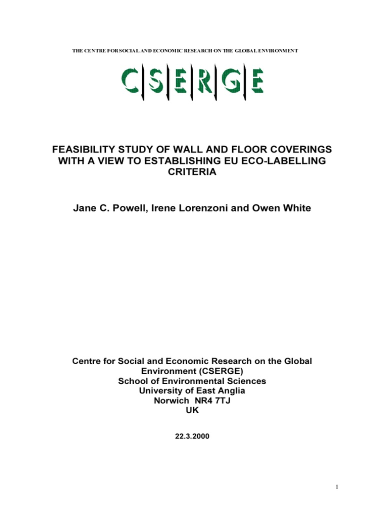 floor coverings; a survey of eco-labelling competent bodies and other organisations