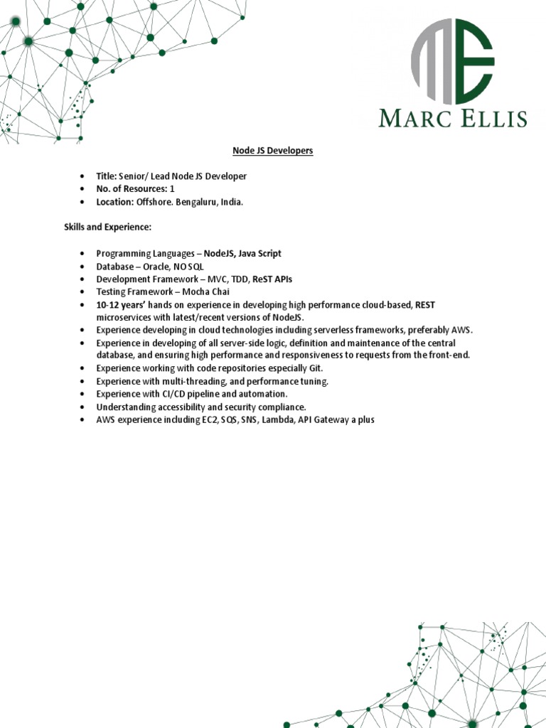 Title: Senior/ Lead Node JS Developer