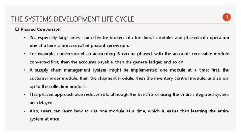 • For example, conversion of an accounting IS can be phased, with the accounts receivable module