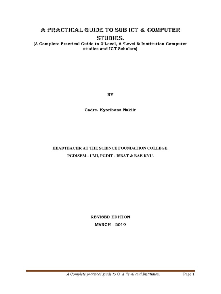 National Examination computer studies/Sub ICT syllabi and has carefully