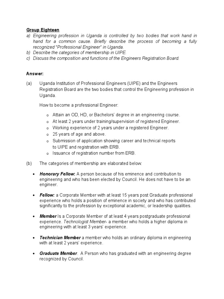 c) In the Development of a Professional Engineer in Uganda, there are different levels