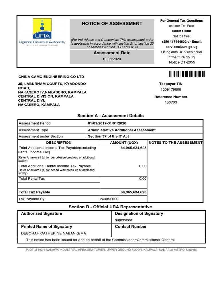 or section 24 of the TPC Act 2014) services@ura.go.ug