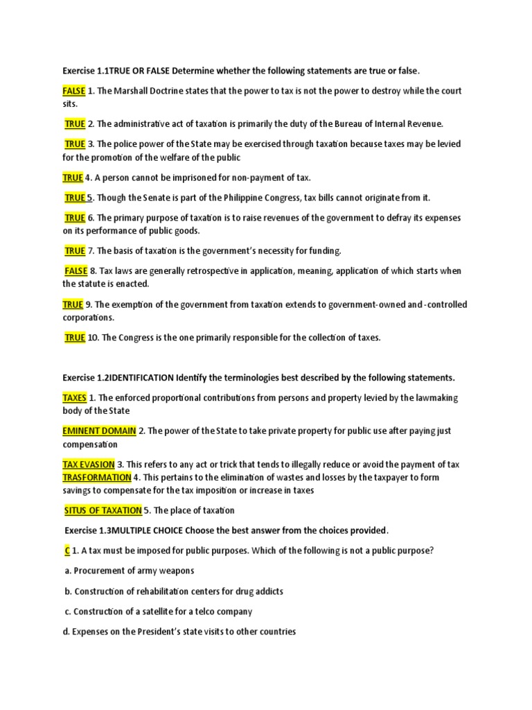 TRUE 2. The administrative act of taxation is primarily the duty of the Bureau of Internal Revenue.