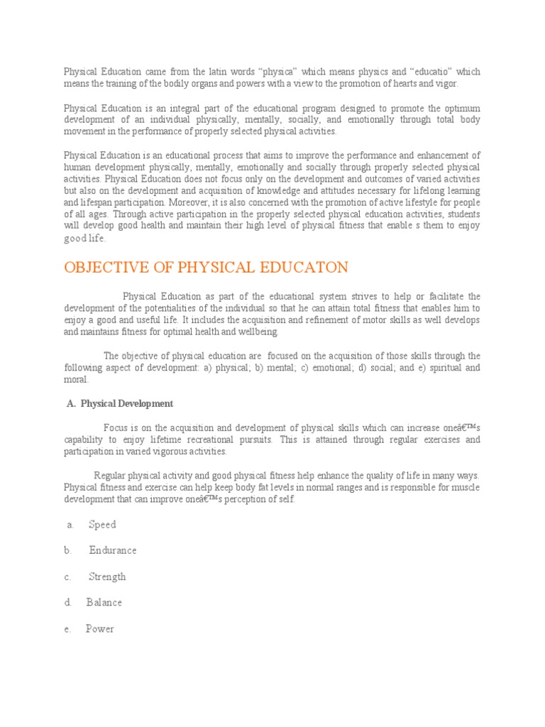 Physical Education is an integral part of the educational program designed to promote the optimum