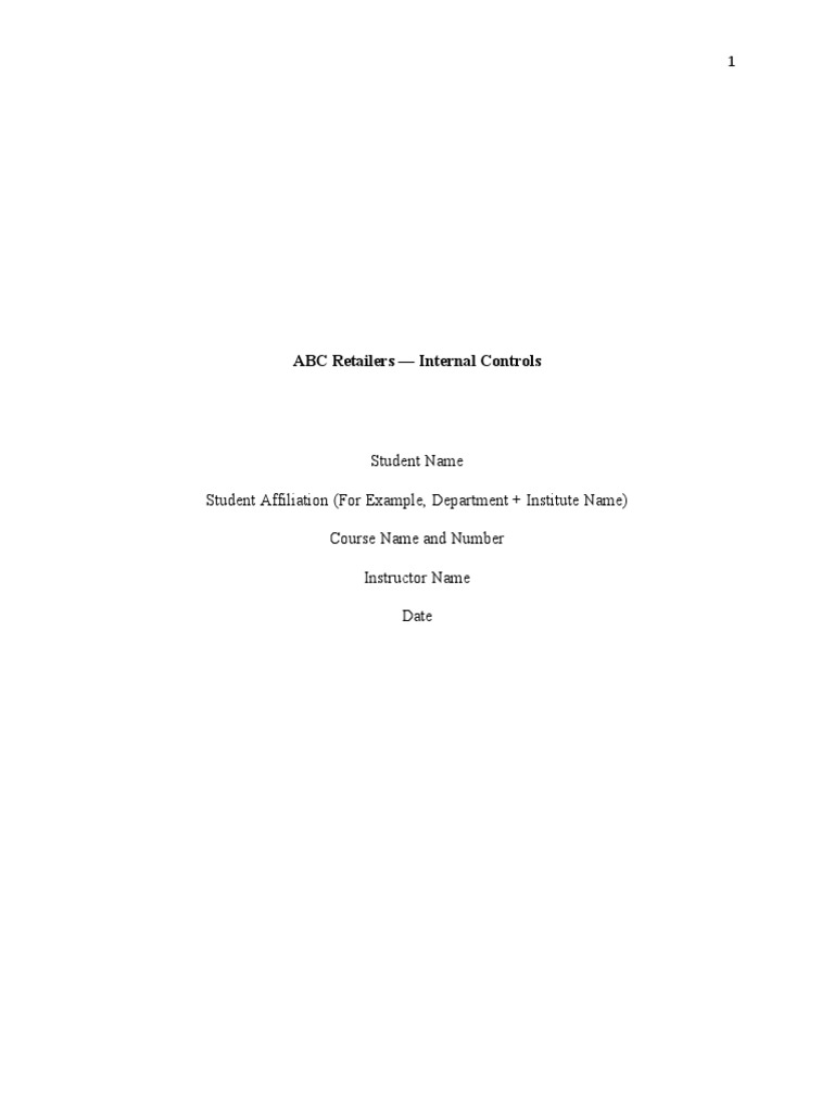 ABC Retailers — Internal Controls