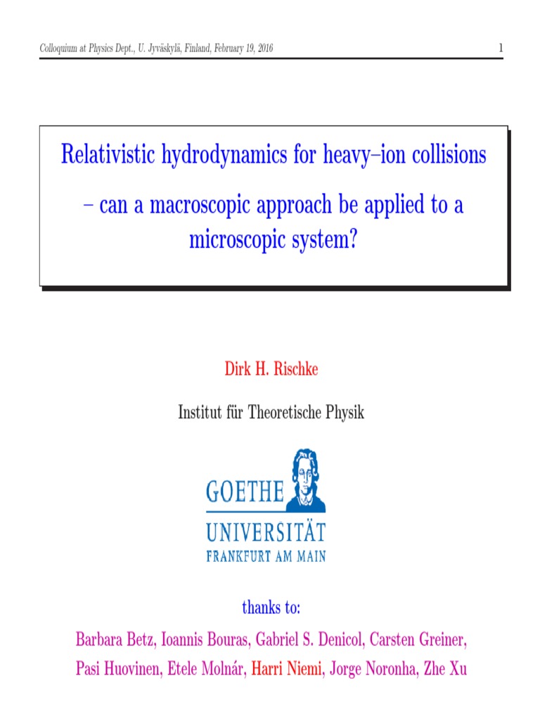 Colloquium at Physics Dept., U. Jyväskylä, Finland, February 19, 2016 2