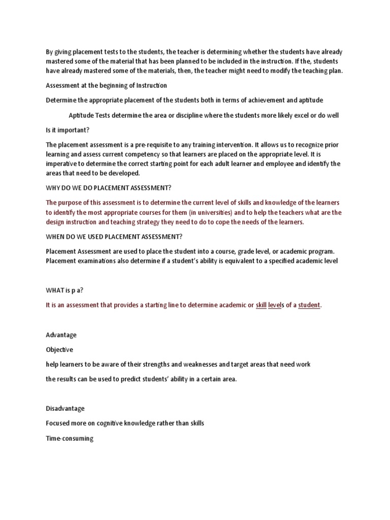 WHEN DO WE USED PLACEMENT ASSESSMENT?