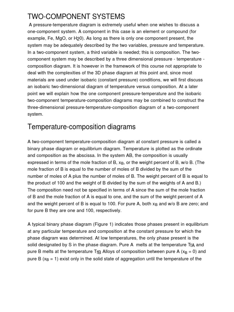 A typical binary phase diagram (Figure 1) indicates those phases present in equilibrium