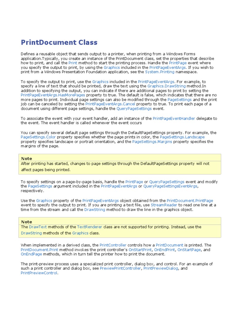 into either using a generic PrintDocument object or implementing a derived PrintDocument class.