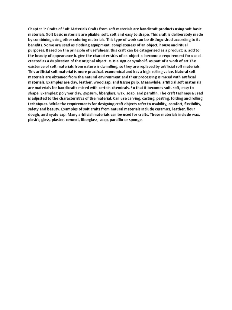 Chapter 1: Crafts of Soft Materials Crafts from soft materials are handicraft products using soft basic