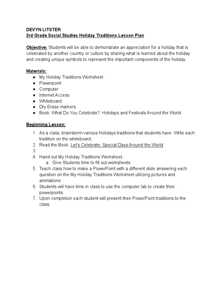 3rd Grade Social Studies Holiday Traditions Lesson Plan