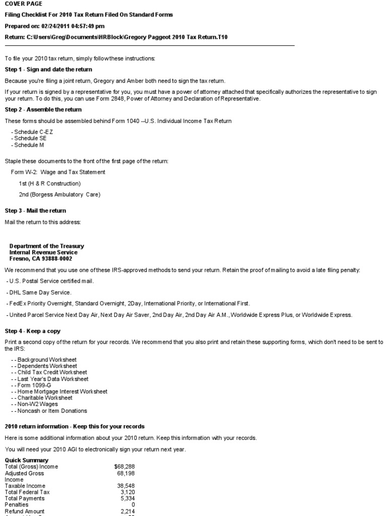 Return: C:\Users\Greg\Documents\HRBlock\Gregory Paggeot 2010 Tax Return.T10