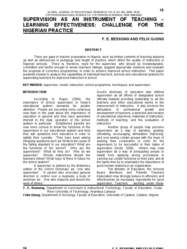 practice of supervision, despite its necessity is Adesina, B., 2001. Basic Principles of