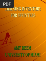 • Development of Training Inventory: Focuses on building a speed training protocol, detailing acceleration and speed endurance elements.
