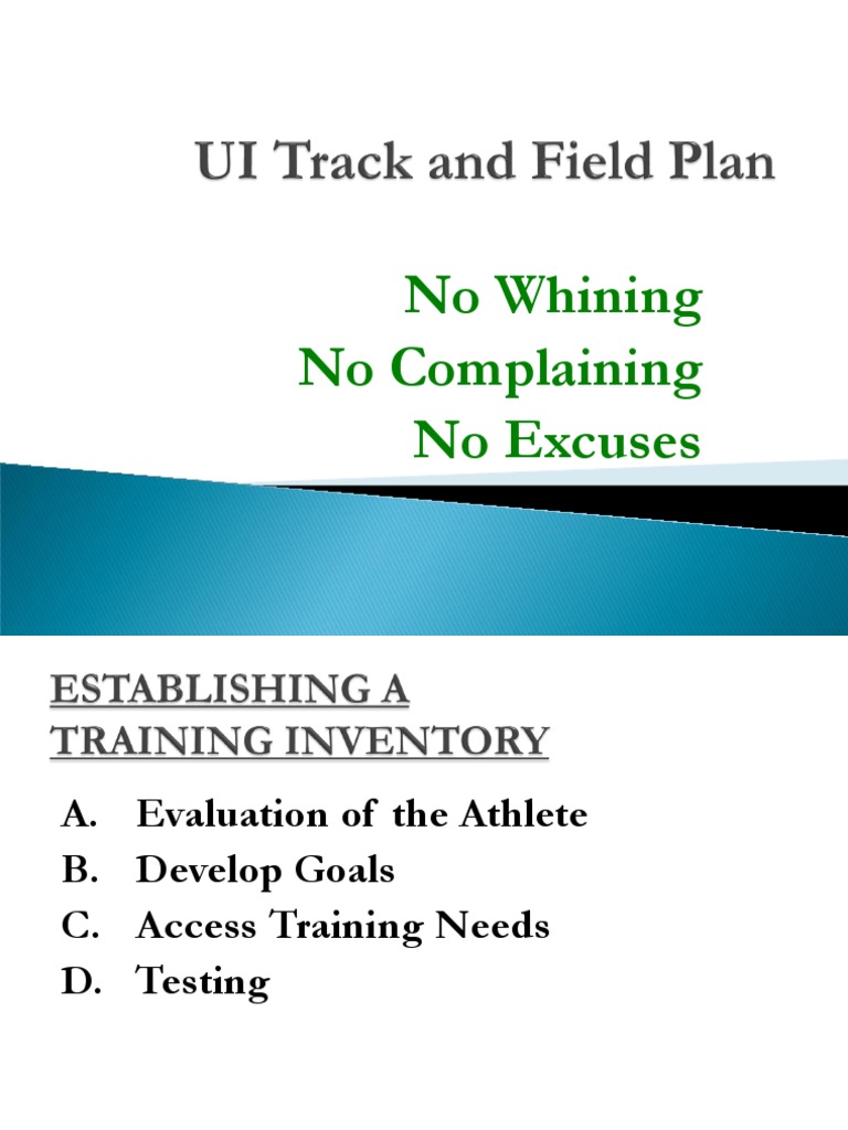 • UI Track and Field Plan: The cover page setting the no-excuses mindset for the training program.