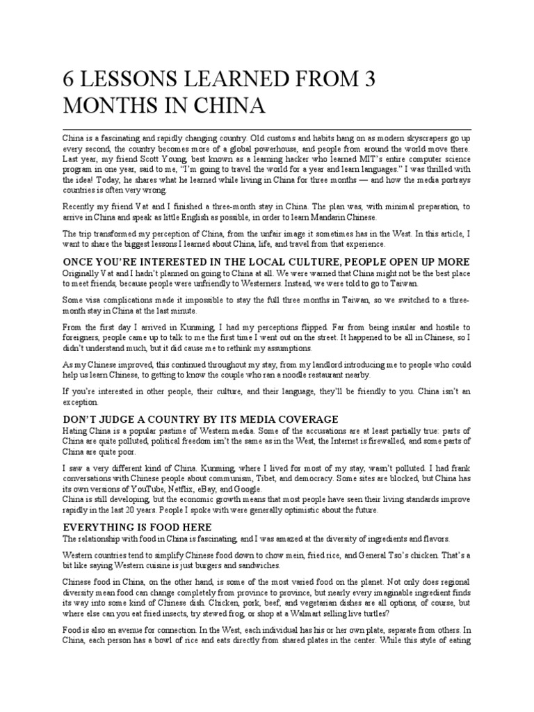 the idea! Today, he shares what he learned while living in China for three months — and how the media portrays