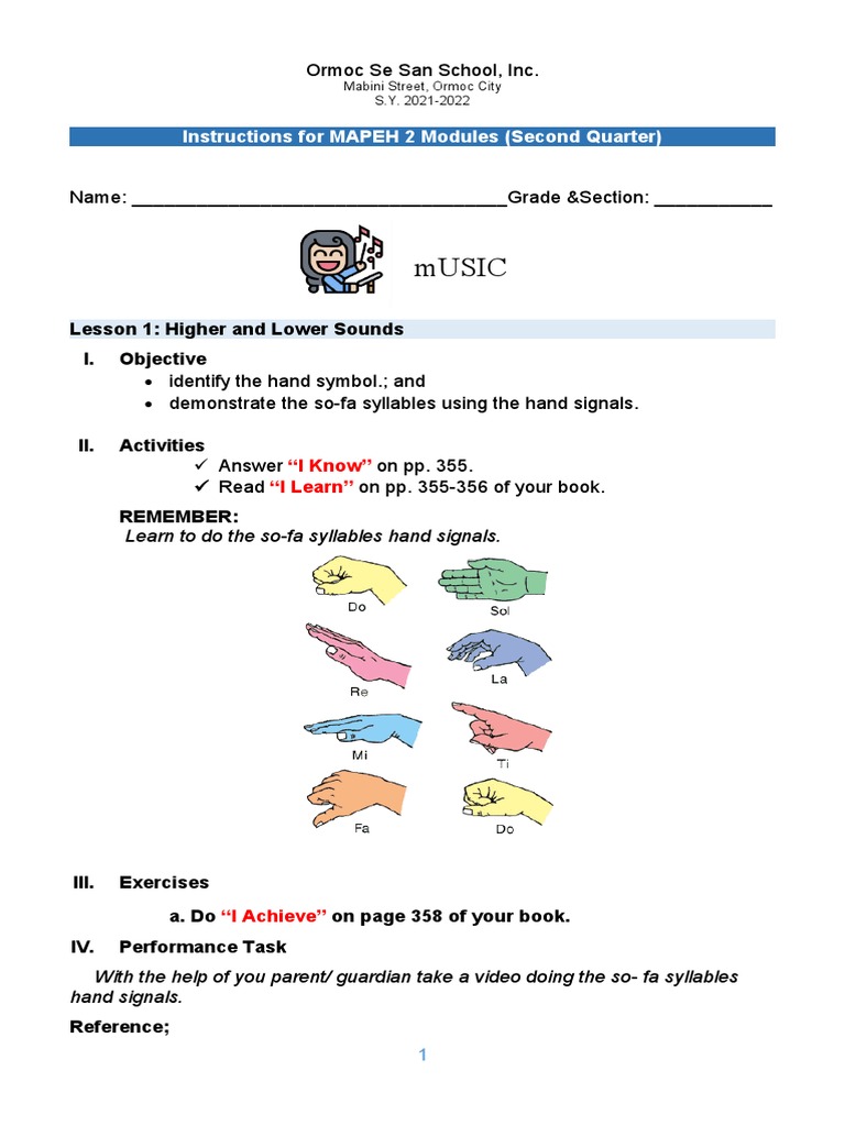 Instructions for MAPEH 2 Modules (Second Quarter)