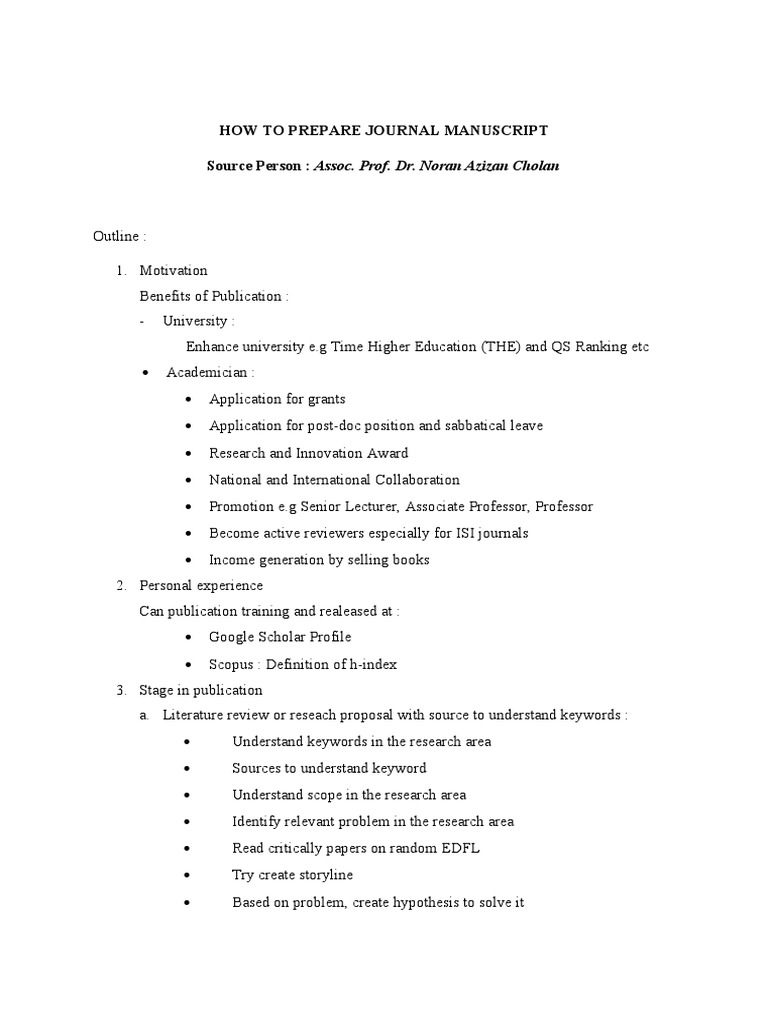 HOW TO PREPARE JOURNAL MANUSCRIPT