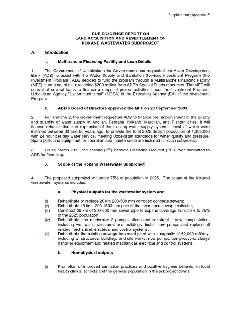 10. The Due Diligence Report confirms that the Kokand Wastewater subproject under Tranche