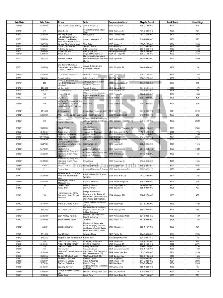 9/29/21 $0 Leeking, Nina Leeking, Patrick 2522 Wightsboro Rd 043-4-052-00-0 1805 539