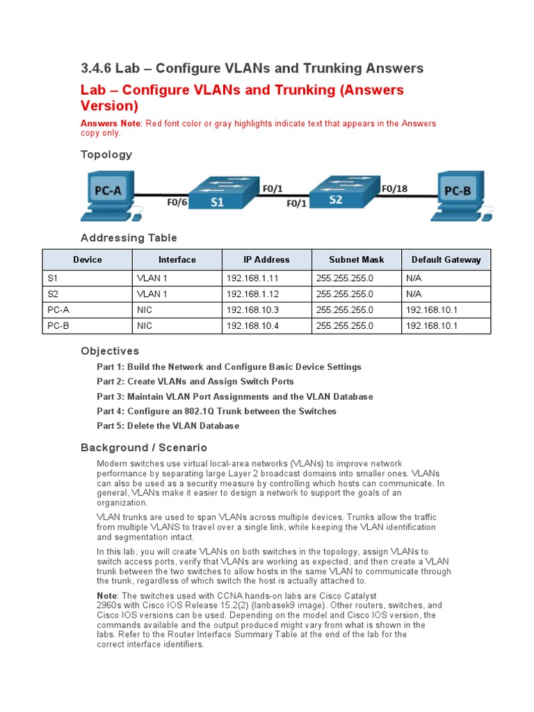 In this lab, you will create VLANs on both switches in the topology, assign VLANs to