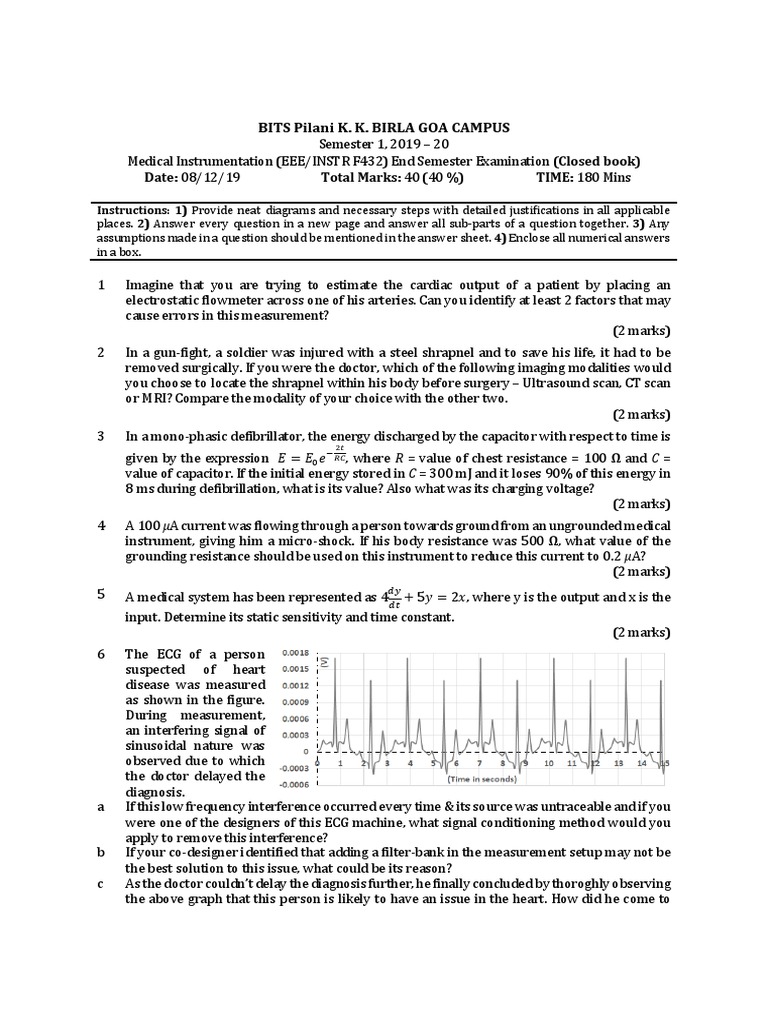 Medical Instrumentation (EEE/INSTR F432) End Semester Examination (Closed book)