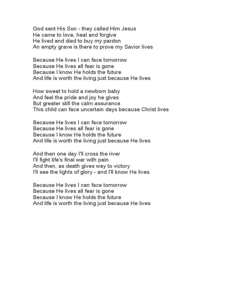 Because He lives I can face tomorrow