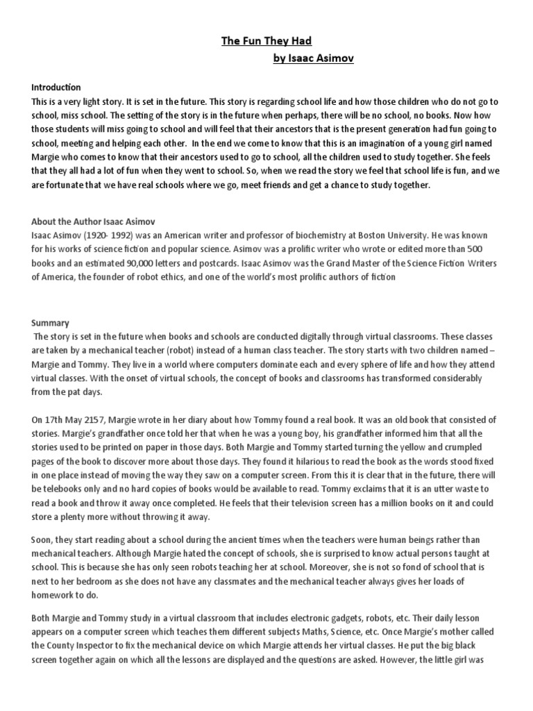 come together and attend school merrily. Thus, Margie gets fascinated about the fun the children had centuries ago