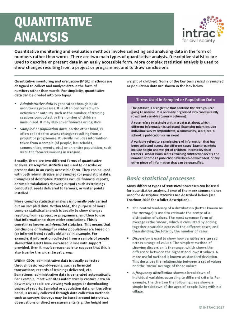 Quantitative analysis is further explored in two other papers in the M&E Universe, dealing with randomised control trials and