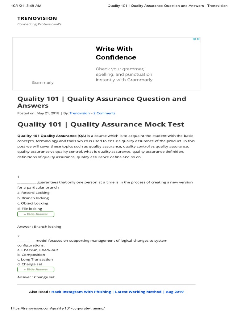 10/1/21, 3:48 AM Quality 101 | Quality Assurance Question and Answers - Trenovision
