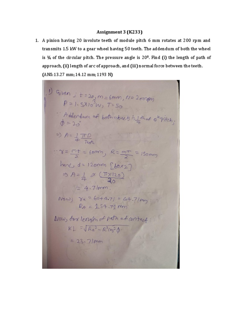 approach, (ii) length of arc of approach, and (iii) normal force between the teeth.
