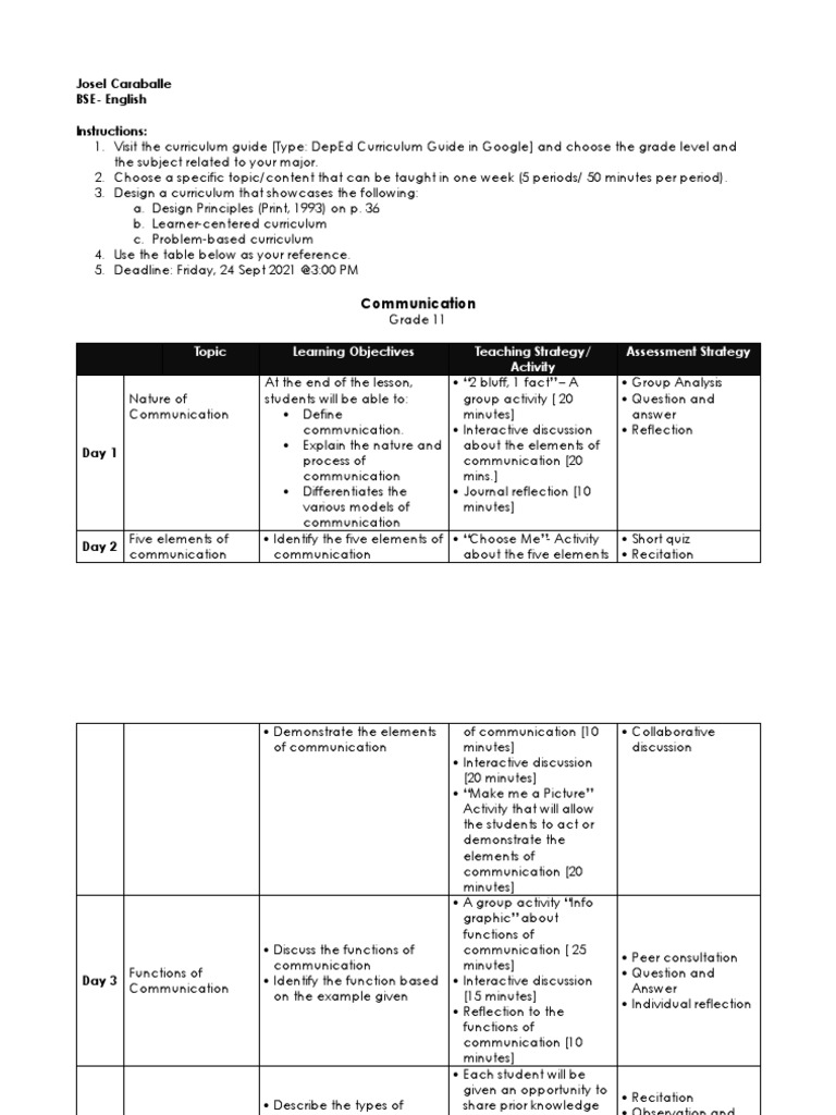 2. Choose a specific topic/content that can be taught in one week (5 periods/ 50 minutes per period).
