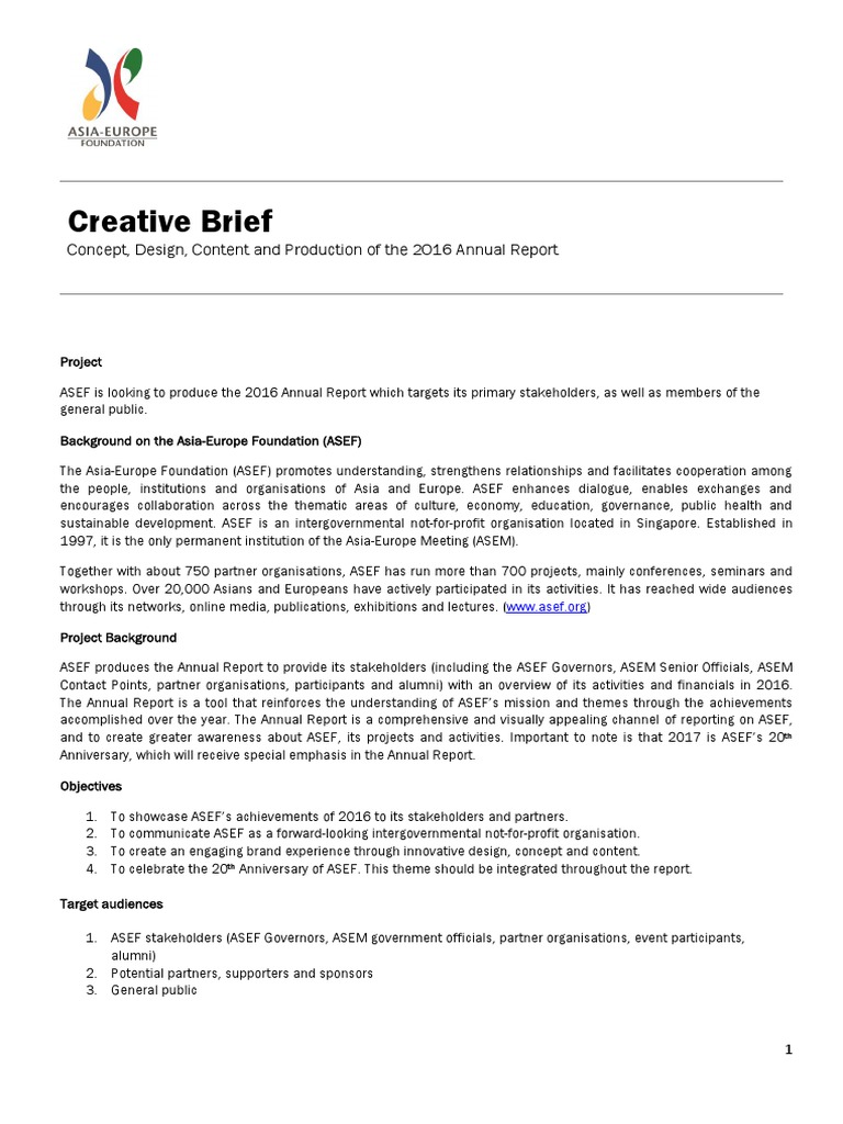 ASEF is looking to produce the 2016 Annual Report which targets its primary stakeholders, as well as members of the