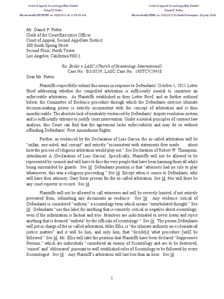 Court of Appeal, Second Appellate DistrictDaniel P. PotterElectronically RECEIVED on 10/8/2021 at 11:38:30 AM