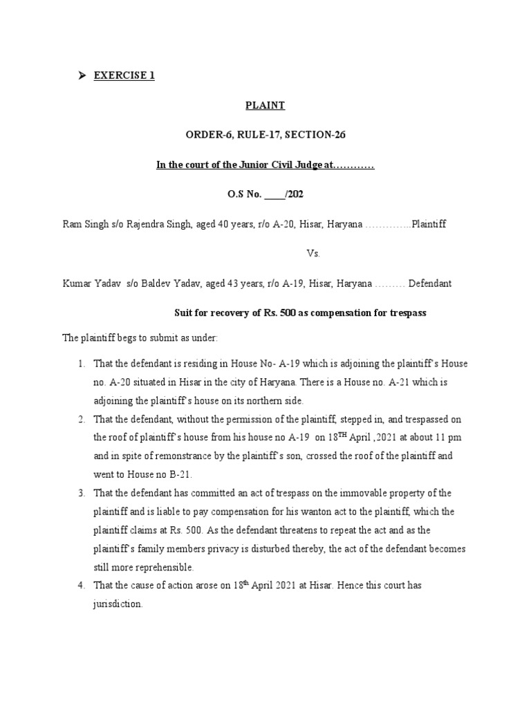 1. That the defendant is residing in House No- A-19 which is adjoining the plaintiff’s House