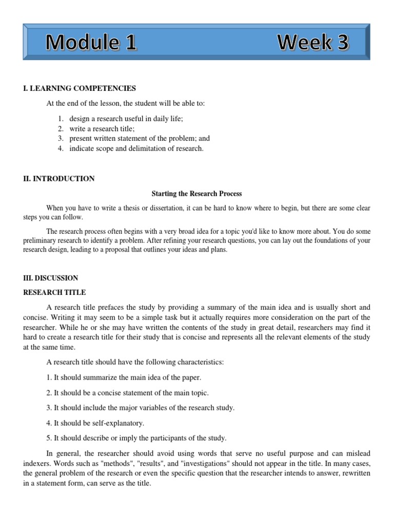 I. Designing a Research Project, Writing Research Title and Making Statement of the Problem